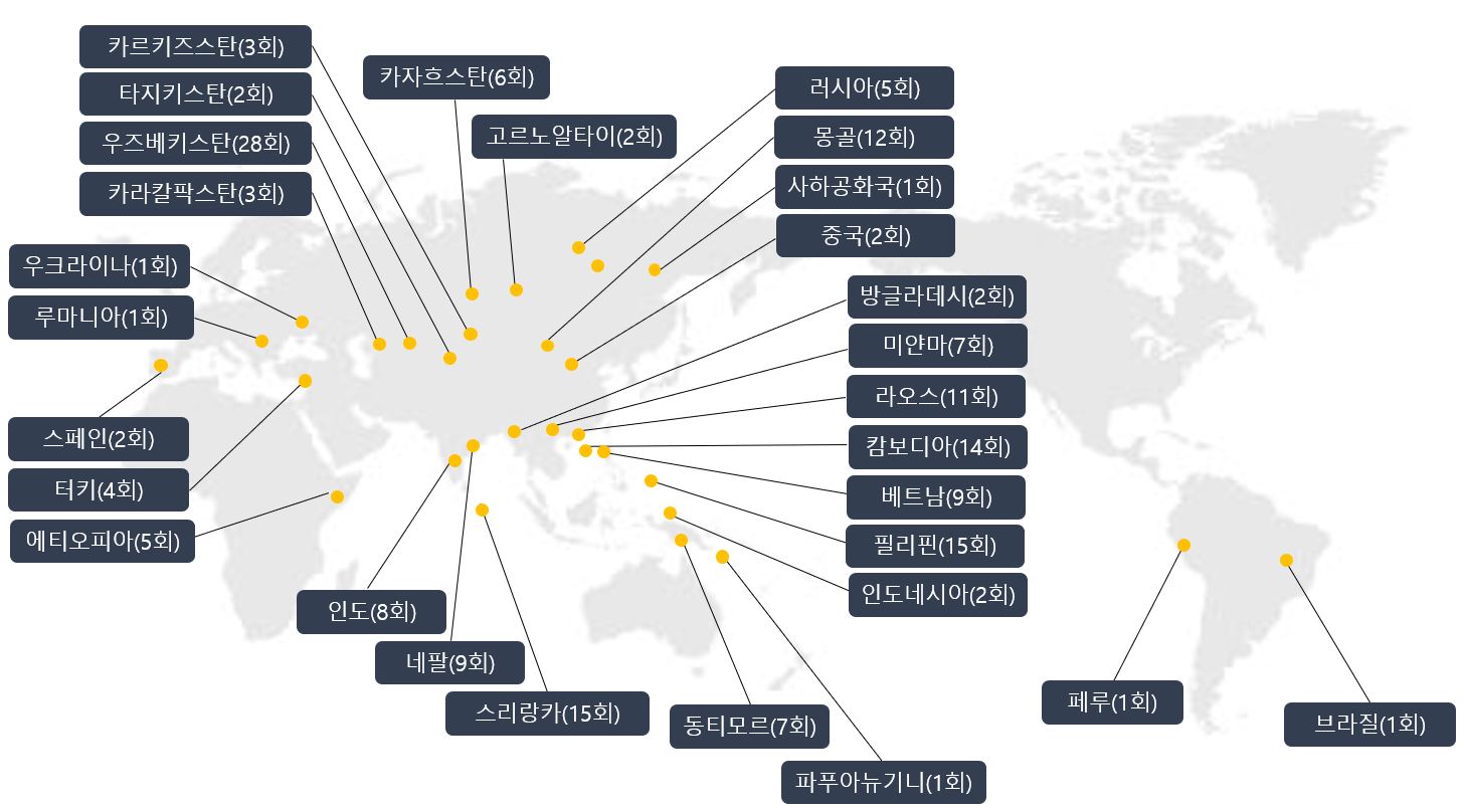 - 총 29개국 179회 파견(2025년 8월 파견기준)